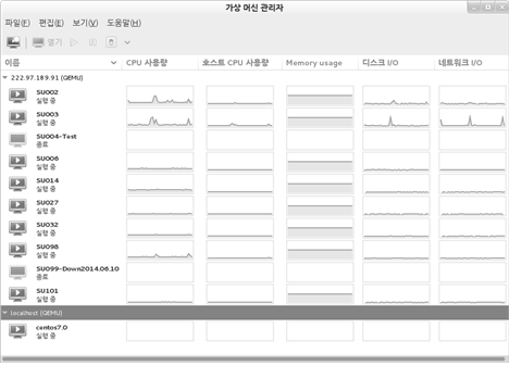 virt-manager를 이용하여 다음과 같이 자원 그래프를 얻을 수 있습니다.