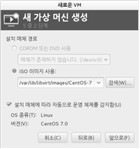 가상머신을 생성하는 방법은 여러 가지가 있지만 위에서 설치한 virt-manager를 사용하여 가상머신 생성 및 게스트 OS를 설치해 보도록 합니다.