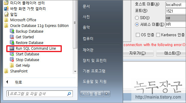 ▼ 처음 HR 계정을 활성화 시켰다고 이용할 수 있는 것은 아닙니다. 잠김을 풀어 줘야 합니다. 계정 잠금을 풀기 위해 Run SQL Command Line 을 이용할 것입니다. 시작 메뉴로 가서 Run SQL Command Line 클릭해서 콘솔 창을 띄웁니다.