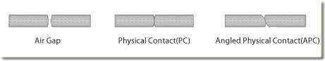 PC는 커넥터 끝 단면이 평평한 타입이고, 다른 한 종류는 APC로서 끝단면이 원뿔 형태로 가늘어 진 면을 각(일반적으로 8도)을 주어서 연마를 한 형태를 말한다.