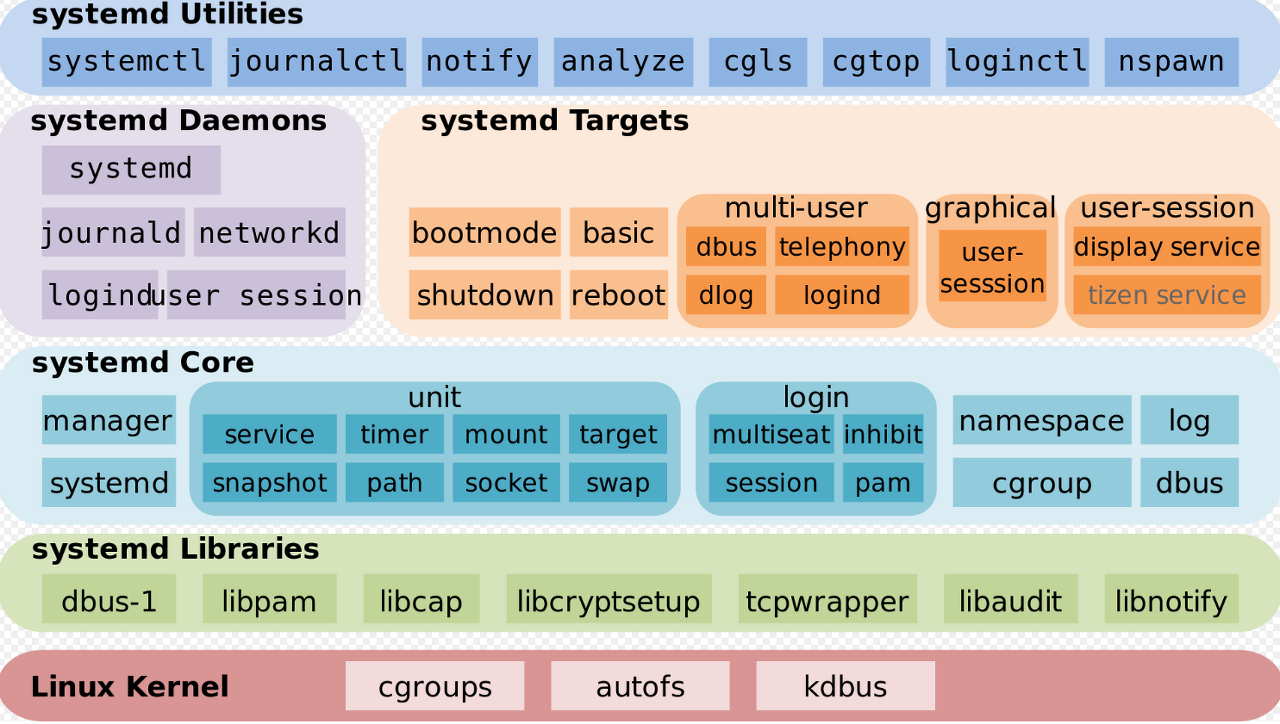 출처: https://en.wikipedia.org/wiki/Systemd#/media/File:Systemd_components.svg