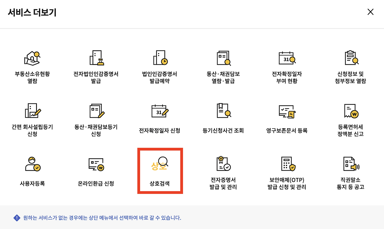 2. 인터넷 등기소 메인 페이지