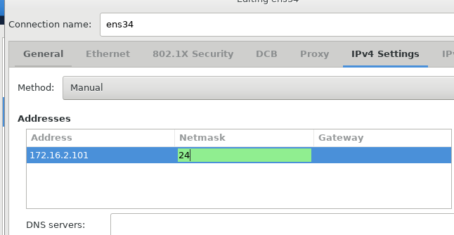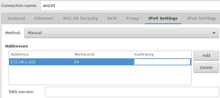 - ENS 33 과 ENS 34 는 외부와 연결을 하지 않으므로, Default Gateway 주소 와 DNS Server 주소가 필요하지 않다