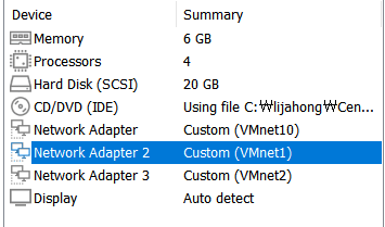 - KVM 1 설정이 끝났다. 이제 나머지 두 개의 가상 머신도 위 네트워크 설정을 보고, 각각 세부 설정 해주자