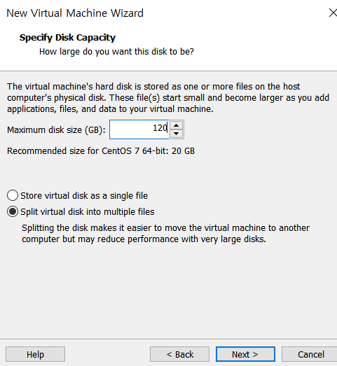 - 120 GB 로 설정한다
