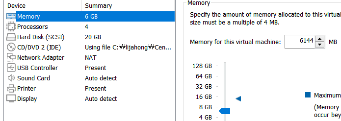 - RAM 을 4 GB 사용하기로 했는데, 6 GB 로 늘려주자