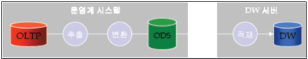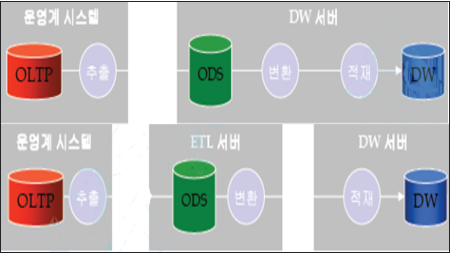 | 처리 차이점 | raw data 수집 후 정해진 데이터 형식으로 전환하여 데이터 웨어하우스에 적재 | raw data 수집 후 데이터 웨어하우스에 적재 후 분석 직전에 전환 |