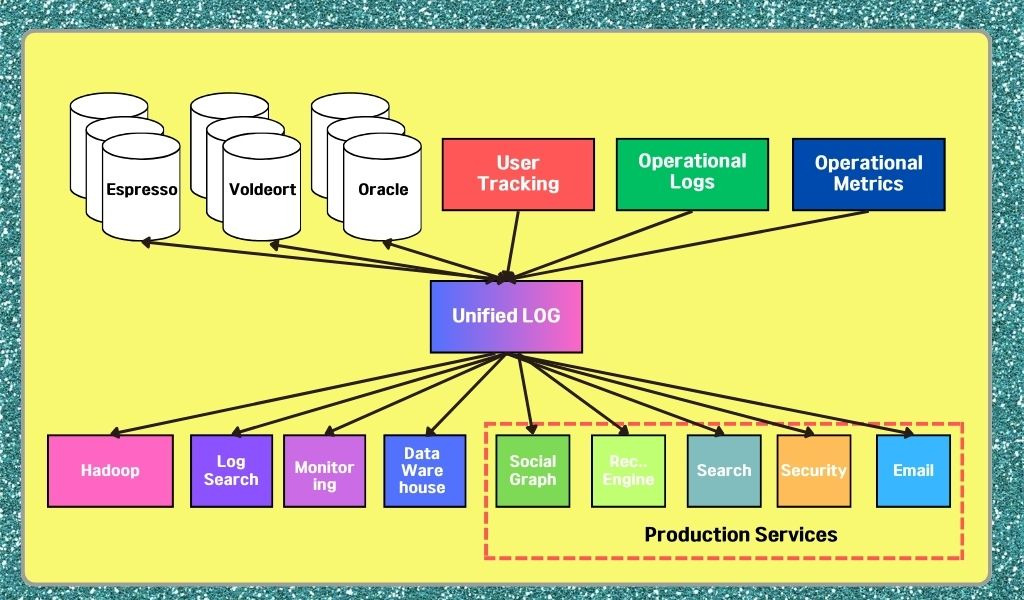 (카프카 사용 전 링크드인의 시스템 아키텍처 처리 방식)