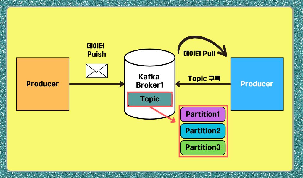 - Broker: Broker는 이 이벤트 정보를 받아 “활동 로그” Topic의 파티션에 저장합니다. 여러 사용자로부터 발생하는 이벤트가 동시에 처리되므로 높은 처리량을 유지합니다.