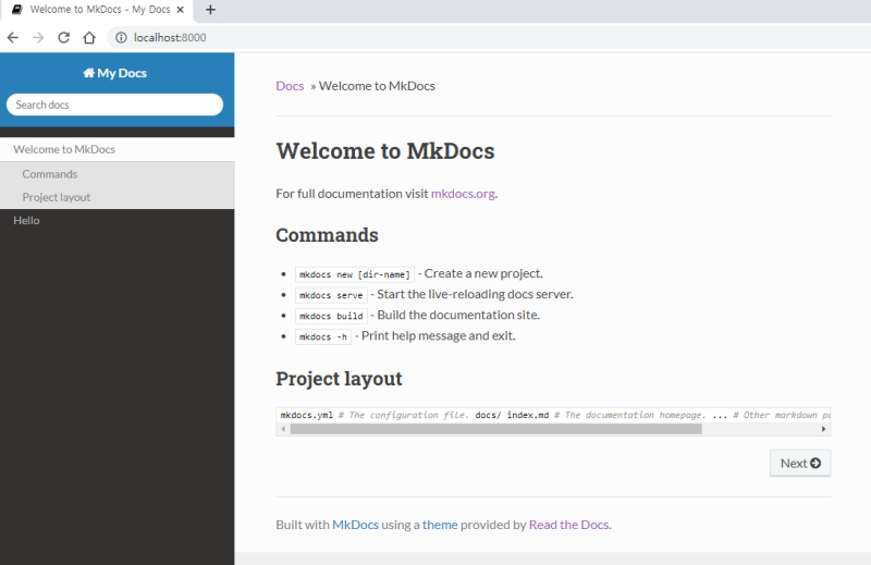 (아까 mkdocs serve로 연 문서 서버를