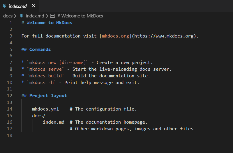 자동생성된 docs 폴더안에 index.md 라는 file이 있는데 코드를 보면