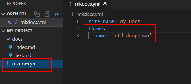 mkdocs.yml을 아래와 같이 수정하시고