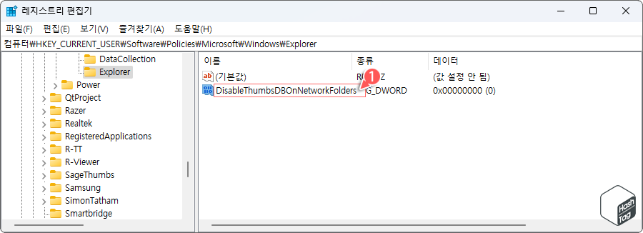 새롭게 생성한 DWORD 값 이름을 ‘DisableThumbsDBOnNetworkFolders’로 지정합니다.