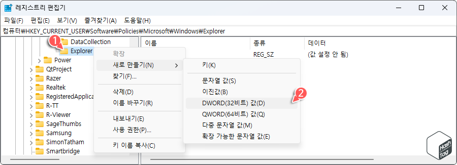새롭게 생성한 키 이름은 ‘Explorer’로 지정합니다.