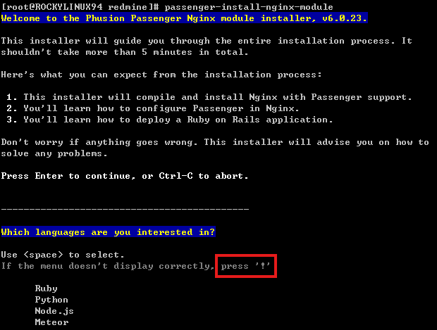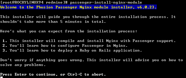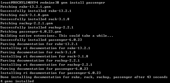 [root@ROCKYLINUX94 redmine]# gem install passenger