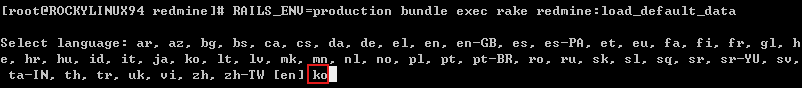 [root@ROCKYLINUX94 redmine]# RAILS_ENV=production bundle exec rake redmine:load_default_data