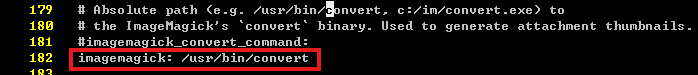 configuration.yml 파일을 열고 182 line 정도에 imagemagick: /usr/bin/convert 를 추가해준다.
