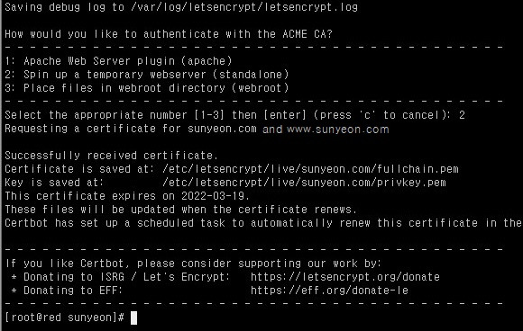 shall]$ certbot -d sunyeon.com -d www.sunyeon.com certonly
