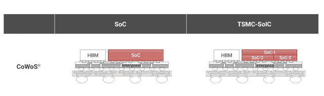 TSMC-SoIC가 적용되면 시스템반도체의 두께는 기존 775마이크로미터에서 수십 마이크로미터 이상 두꺼워지게 된다. HBM의 두께 표준도 자연스럽게 완화될 수밖에 없는 구조다. 현재 엔비디아·아마존웹서비스(AWS) 등이 TSMC-SoIC 채택을 계획 중인 것으로 알려졌다.