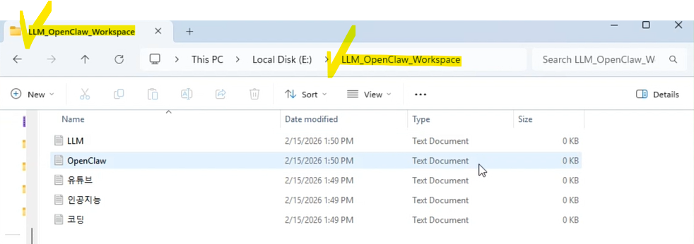 그러면, 요약 뿐만 아니라, 파일 변경도 가능할까요? 아래는 해당 폴더의 내용을 통해 가장 걸맞는 폴더명을 알려주고, 이를 실제 폴더명으로 변경해달라고 해봤습니다. 그러자 실제로 OpenClaw와 연동된 LLM 에이전트가 폴더명을 'LLM OpenClaw Workspace'라고 추천했고, 이를 실제 폴더명으로 변경하였습니다. 정말 미친거 아닌가요??