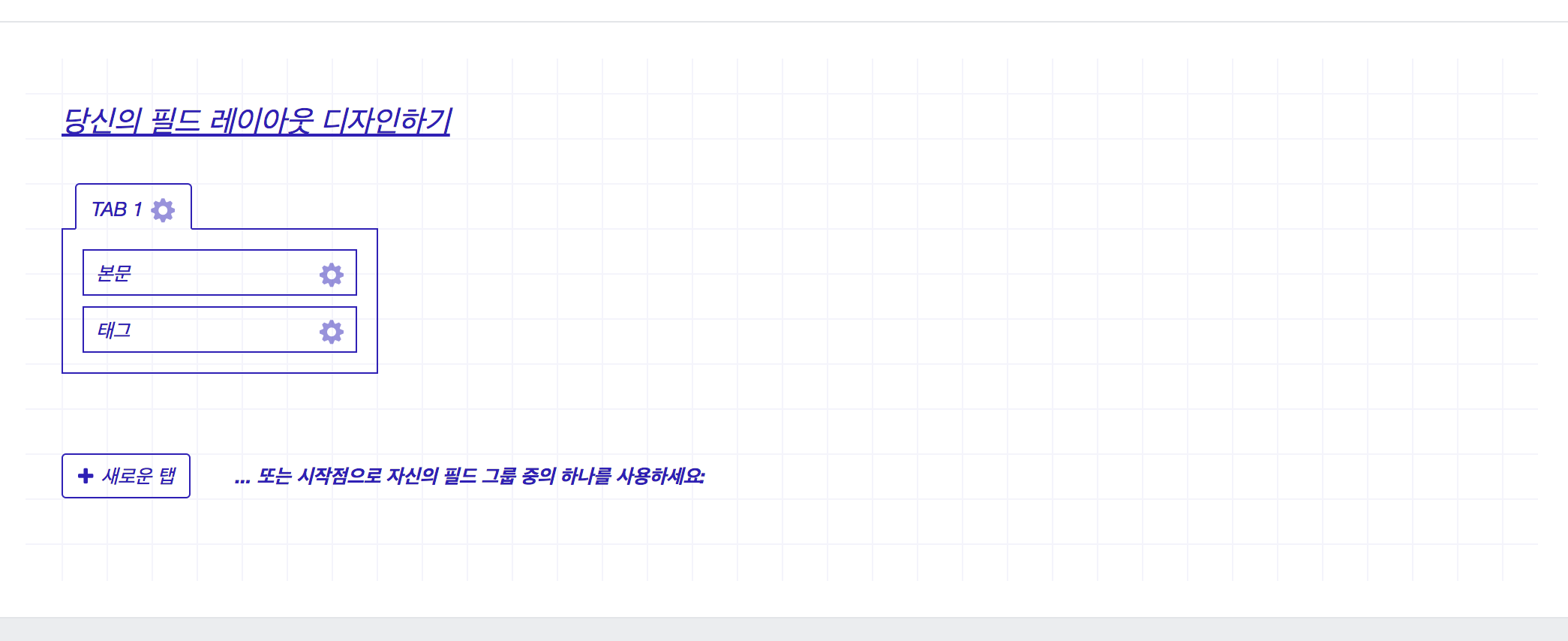 방금 우리가 만든 Post 항목은 이제 ‘본문’과 ‘태그’라고 하는 2개의 필드를 갖는다. (‘제목’ 필드는 항상 따라 다닌다)