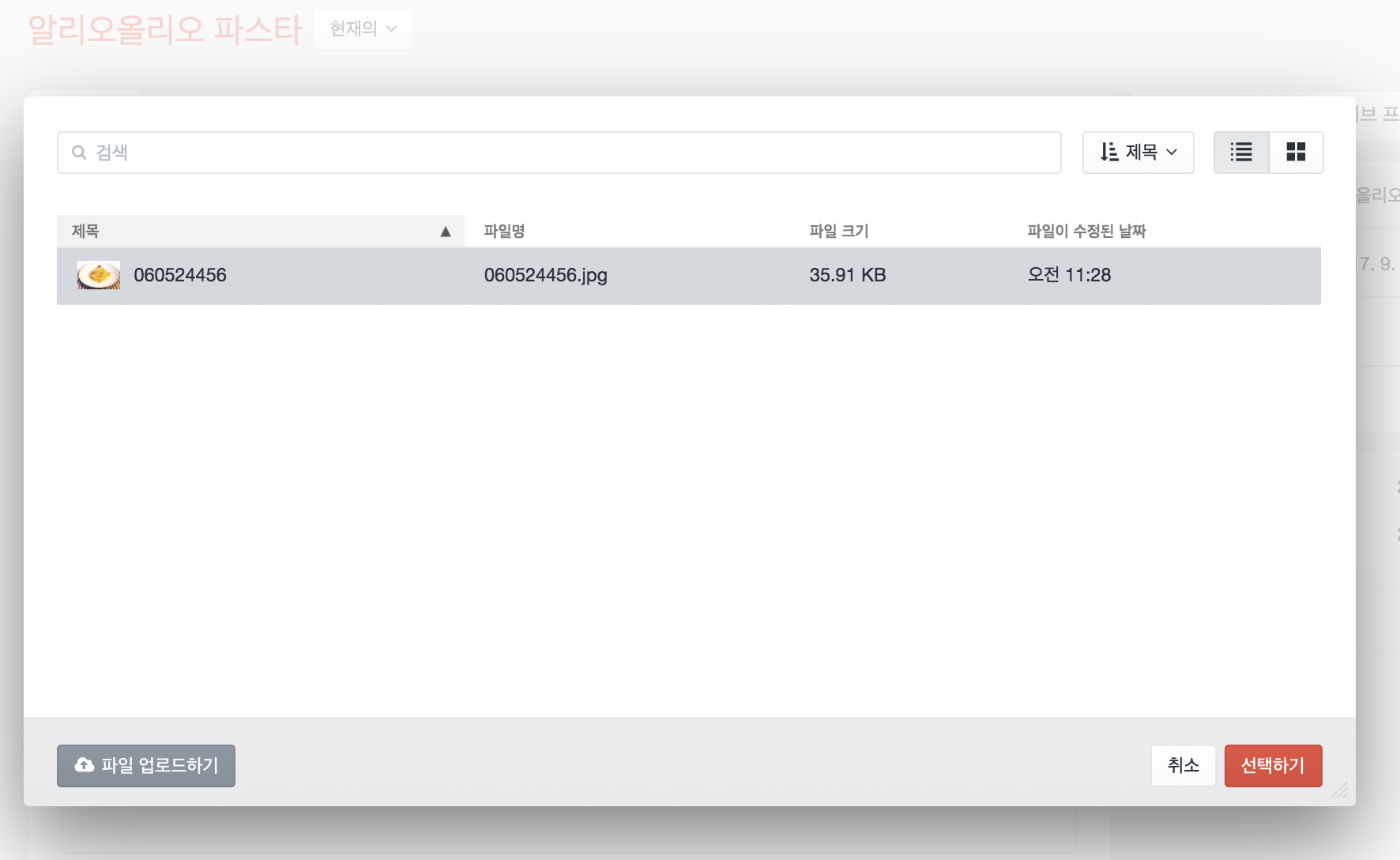 이제 레시피 항목 편집 창으로 돌아오면 에셋 파일을 추가할 수 있게 업로드 버튼이 보일 것이다.