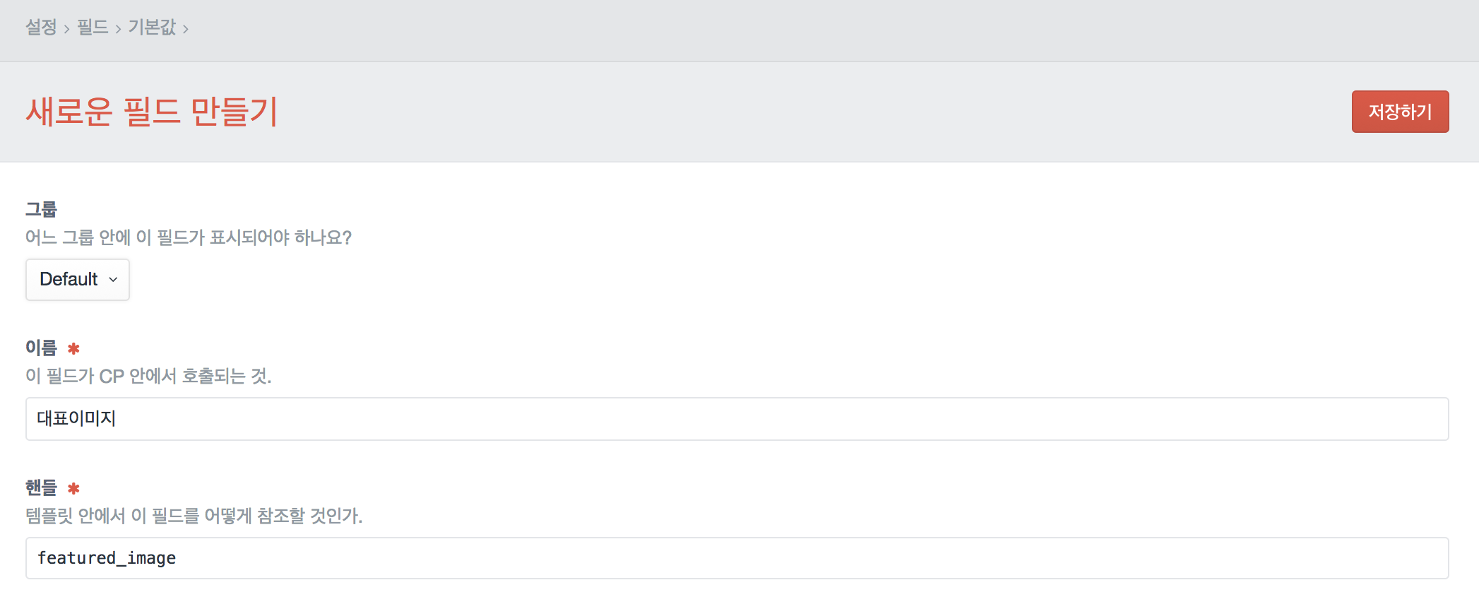 저장하고, 다시 “설정 > 필드” 메뉴로 가서 ‘대표이미지’ 필드로 들어가 보자.
