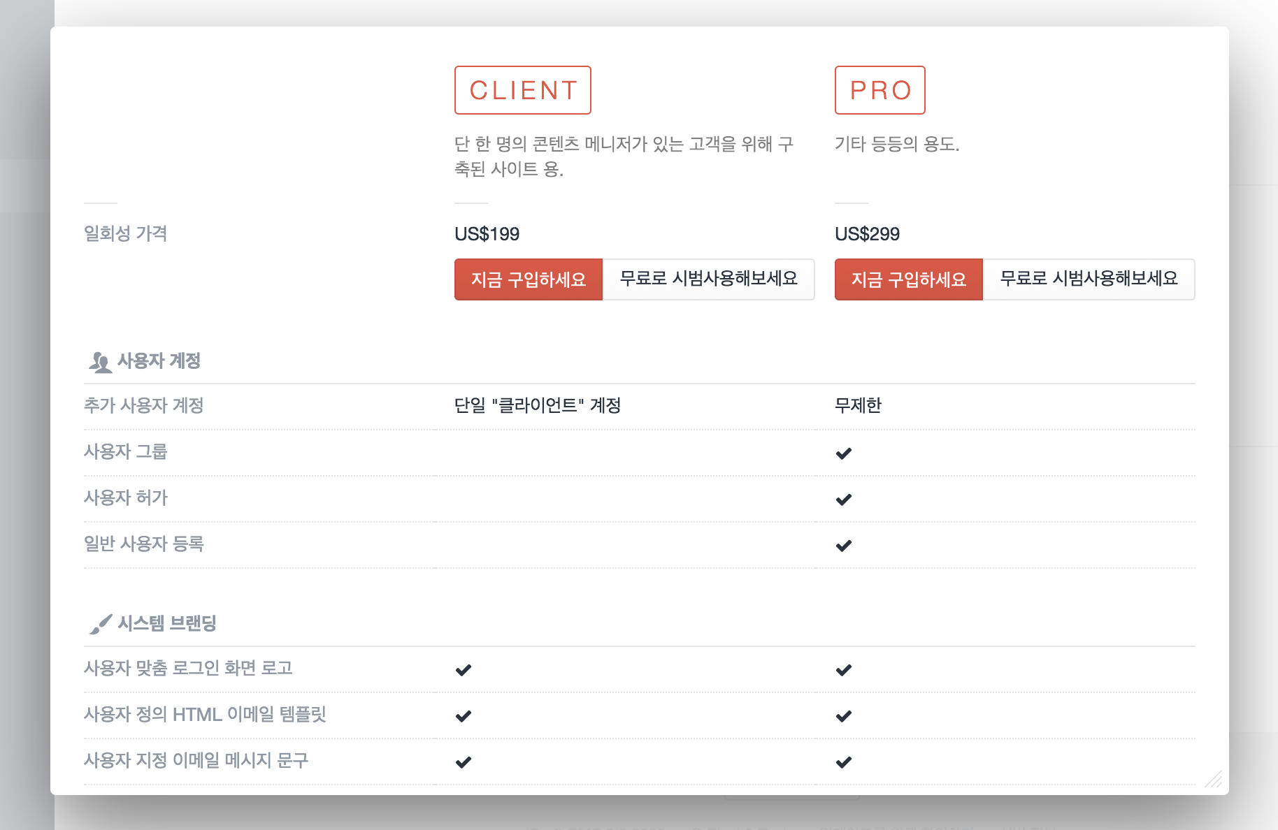 참고로, 이들 기능 중 일부는 별도의 라이선스를 구입해야 활성화된다. Craft는 PERSONAL / CLIENT / PRO 3종의 라이선스가 있는데 이 중 PERSONAL을 제외한 나머지 2개는 유료이다. 사이트 라이선스는 Craft의 비즈니스 모델이며, 주로 유료 호스팅 서비스를 통해 수익을 얻는 워드프레스 개발사 Automattic과는 조금 다른 비즈니스 모델이다.