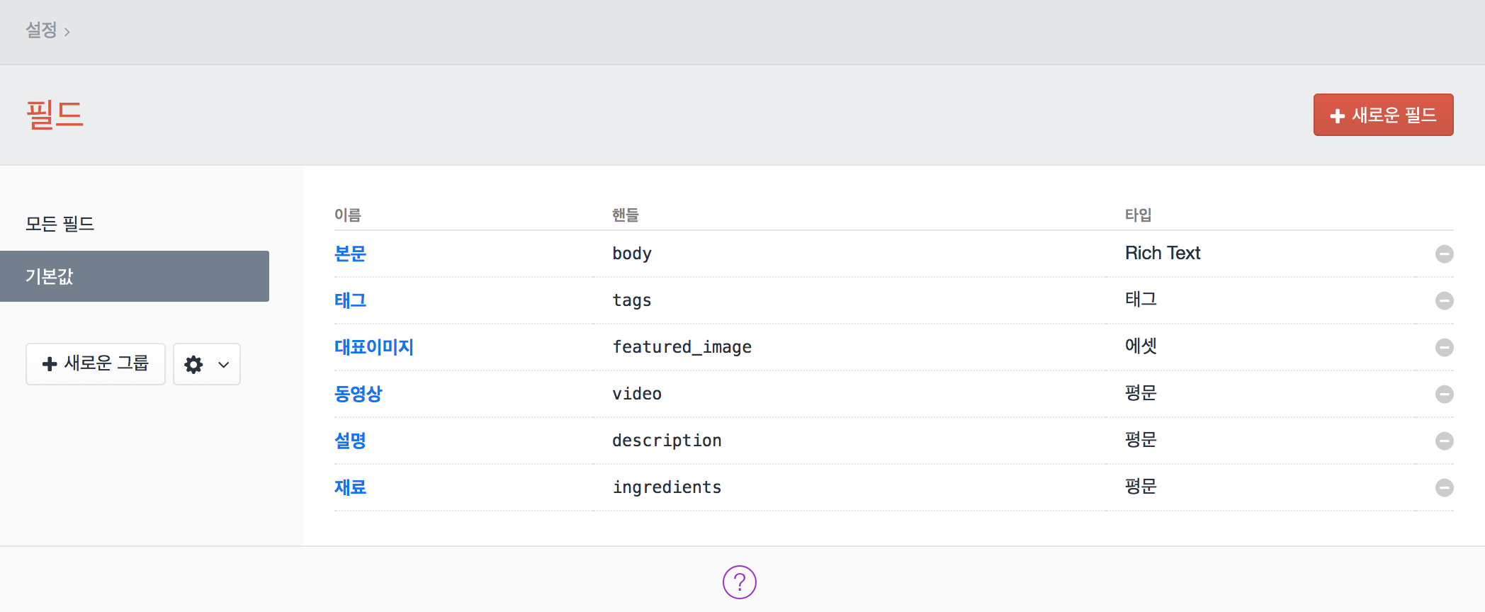 다 되었다. 이로서 우리는 새 콘텐츠 항목인 Recipe를 하나 만든 것이다.