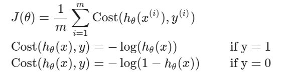 logistic regressor의 cost function 아래와 같이 정의 된다.