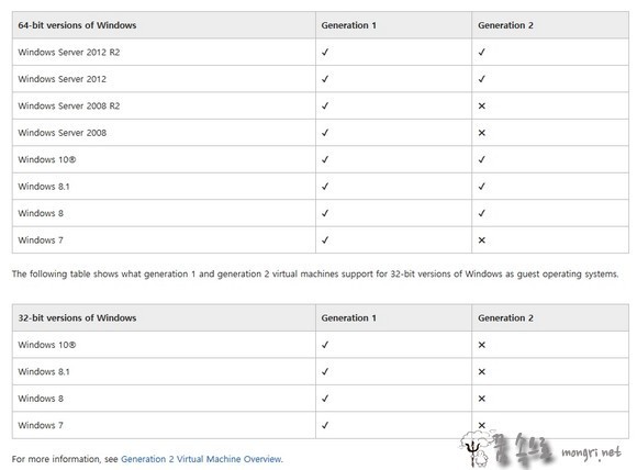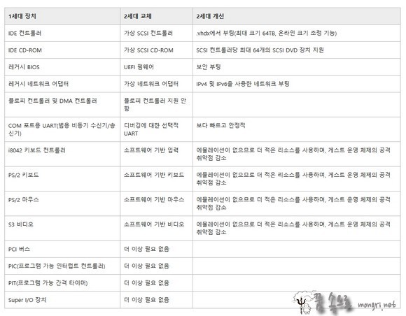 1세대와 2세대의 차이는 윈도우 지원 유무 및 개선 사항을 살펴 보면 대략 파악할 수 있을 겁니다. 가상 컴퓨터에 윈도우7을 설치하고 싶다면 1세대를 선택해야 하고, 윈도우8 64비트를 설치하고 싶다면 2세대를 선택하면 됩니다.