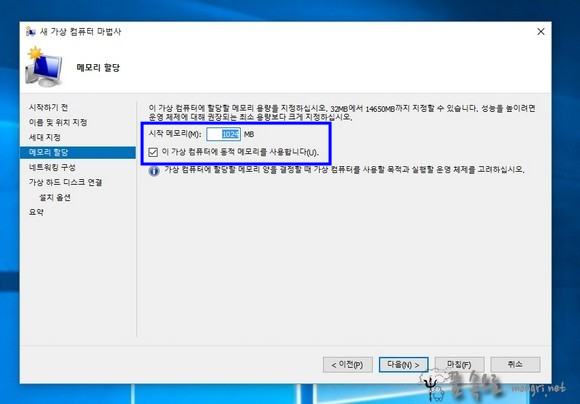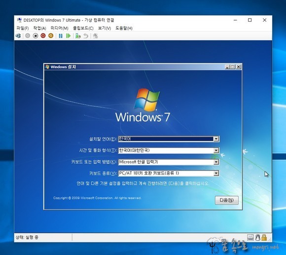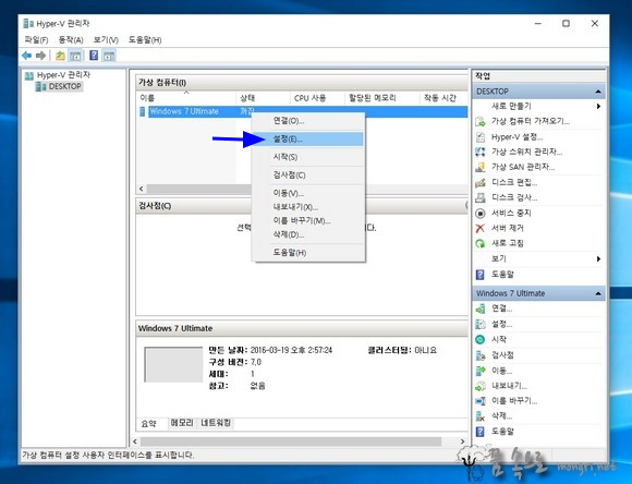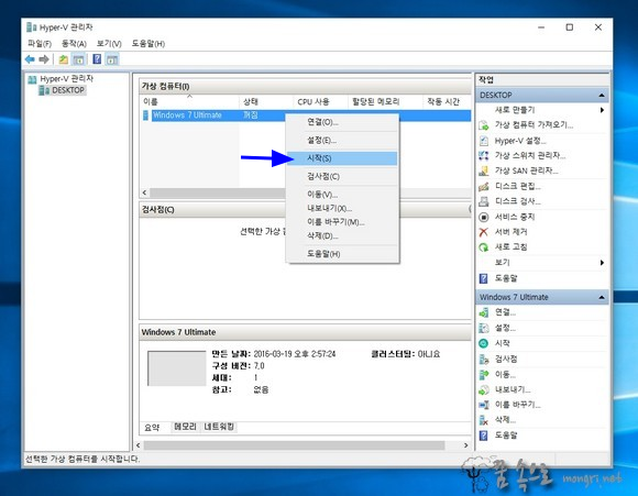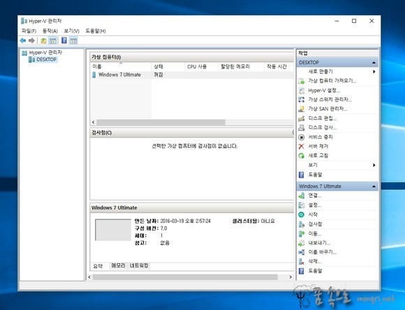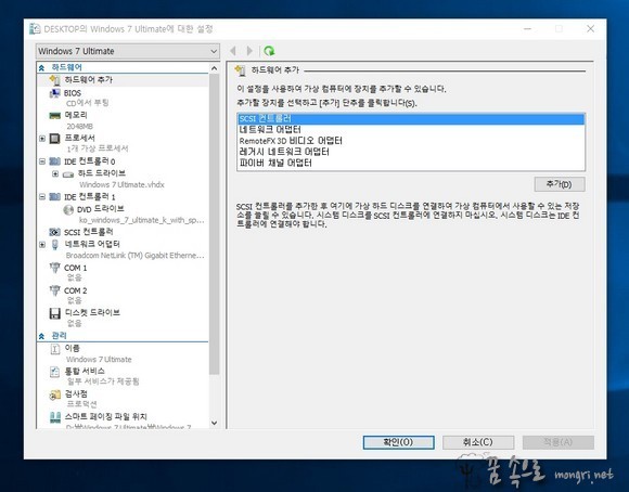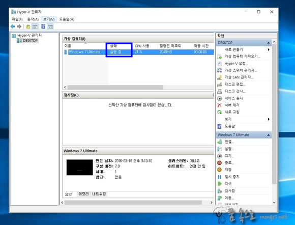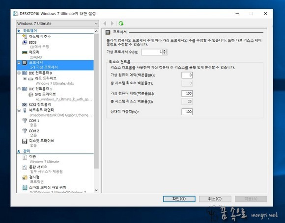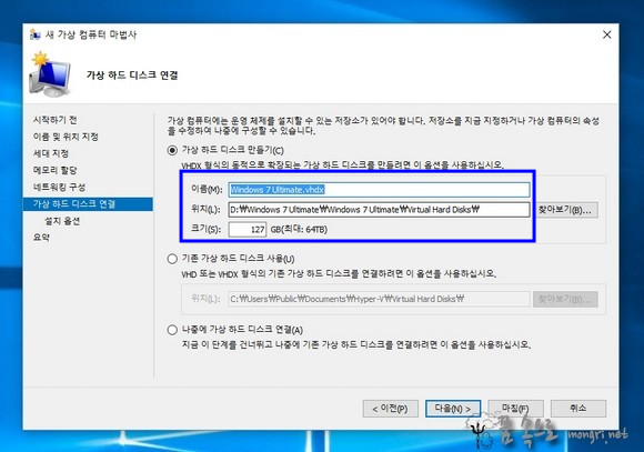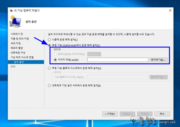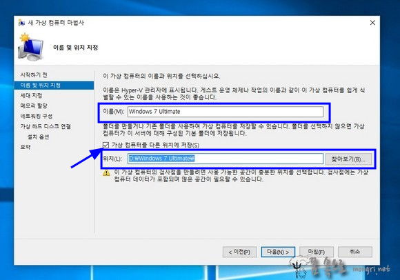 출처: Hyper-V 가상 컴퓨터 만들기 및 ISO 파일로 윈도우7 설치 :: 몽리넷 꿈속으로 (mongri.net)