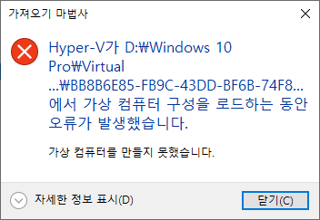 - 기존 고유 ID 사용 시 중복되는 ID를 가진 가상 컴퓨터가 있다면 다음과 같이 에러가 납니다. 새로 ID를 부여하거나 기존 가상 컴퓨터를 삭제하세요.