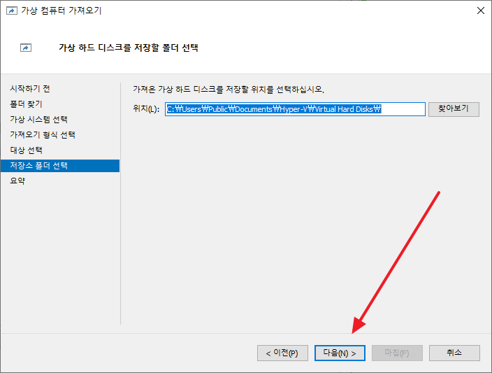 - 가상 컴퓨터 복원이나 가상 컴퓨터 복사를 선택했다면 다음처럼 저장 위치를 설정할 수 있습니다.