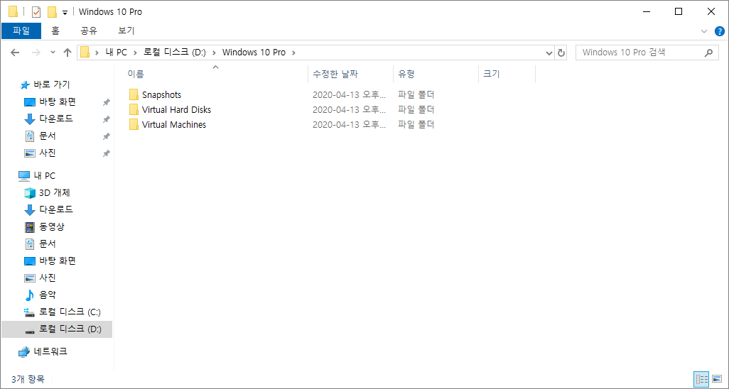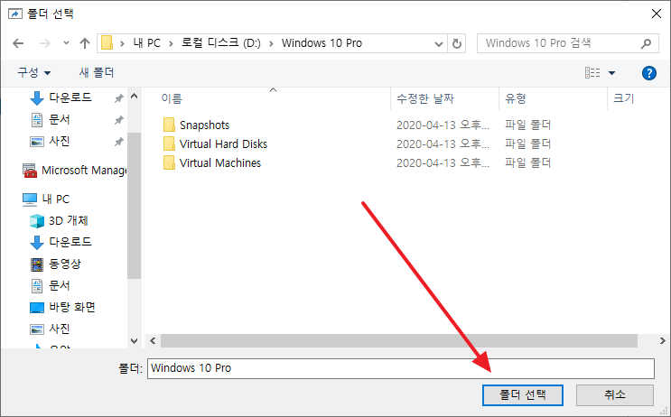 - 가상 컴퓨터 이름의 폴더가 생성되고...