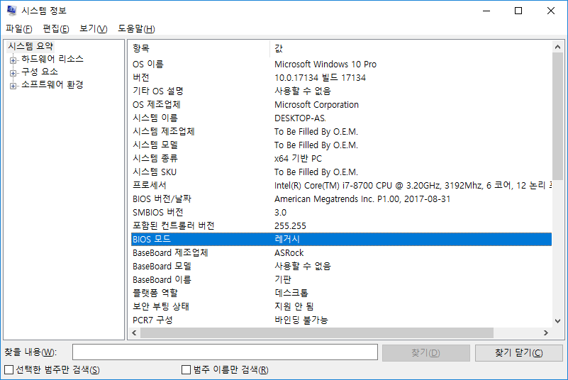 레거시 BIOS와 UEFI 모드 확인하기