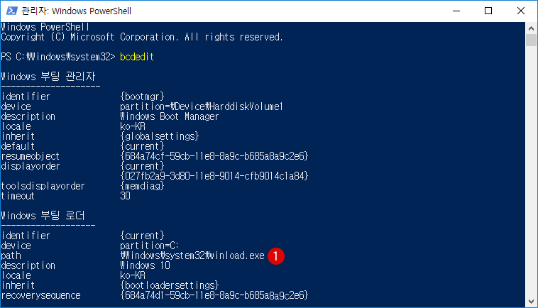 ▼ UEFI 모드의 경우는 경로 (path)가 winload.efi로 되어 있습니다.