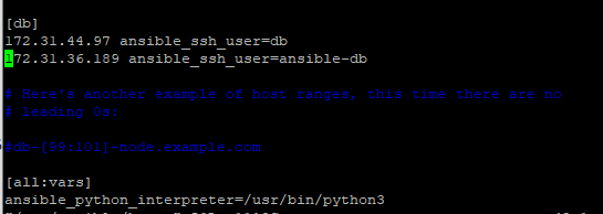vim /etc/ansible/hosts 로 들어가서 아래와 같이 변경해주었다