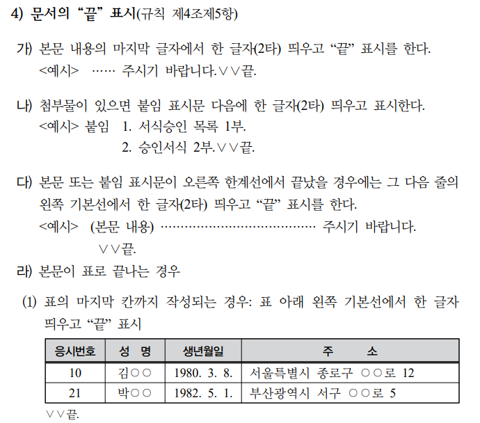 #첨부물표시 #끝표시 #끝쓰는방법 #공문끝
