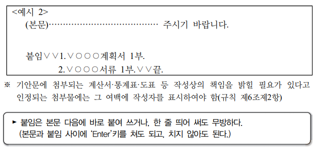 3. 붙임문서 작성방법 / 첨부물의 표시방법!