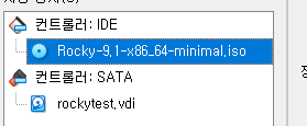 이미지와 같이 '광학 드라이브' 항목에서 '가상 광 디스크 파일 선택'을 클릭하여 이전에 설치한 Rocky Linux 9 iso 파일을 선택합니다.