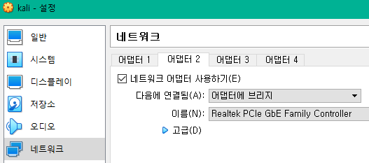 이름은 본인이 위에서 설정한 네트워크 이름 선택