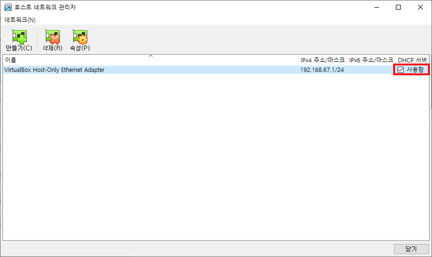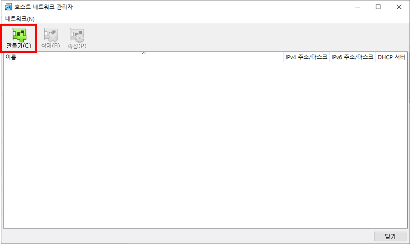 만들기 버튼을 클릭해 새 호스트 전용 네트워크를 생성합니다.