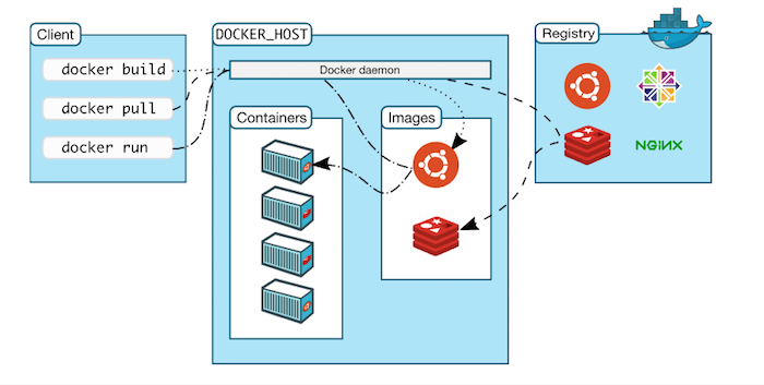 즉, Docker Client와 Docker Server로 나뉘어있고 그 사이에 REST API로 소통을 한다. 결국 client는 요청을 할뿐 build, run, push등은 실질적인 작업은 다 데몬(server)이 수행한다. 한창, gocd-agent를 구성하면서 빌드 파이프라인을 만들때 docker-client쪽 환경변수에 목메어있었는데 daemon이 docker 작업의 핵심이라는 당연한 사실을 뒤늦게 깨달은 멍청이가 바로 나다.