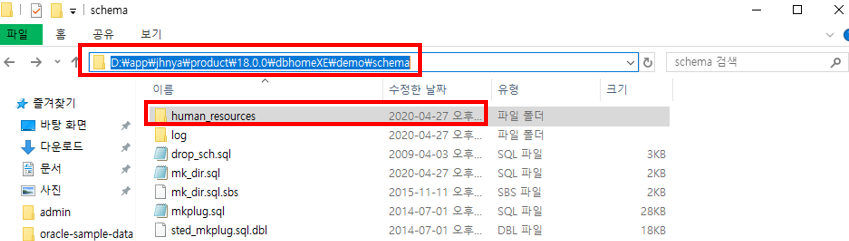 schema 디렉터리 밑에 human_resources가 있네요. 요놈임!