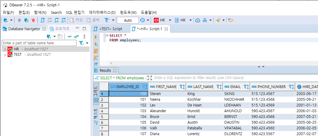 DBeaver의 경우에도 잘 실행되는 것을 확인할 수 있어요.