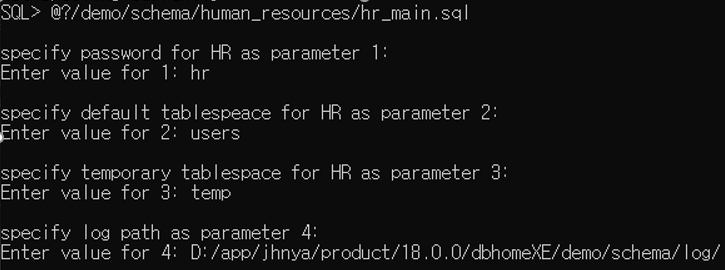 SQL> @?/demo/schema/human_resources/hr_main.sql