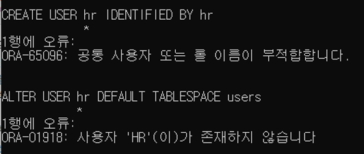 요렇게 '공통 사용자 또는 롤 이름이 부적합합니다' 에러가 뜨면서 유저가 만들어지지 않아요.