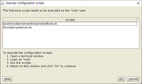 ※ unable ~ 에러 출력시 Linux 접속을 oracle 계정으로 로그인 ( root 등의 계정 후 su 명령어로 유저 변경하면 에러 발생 )
