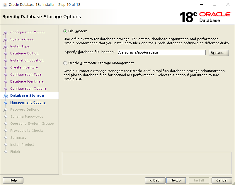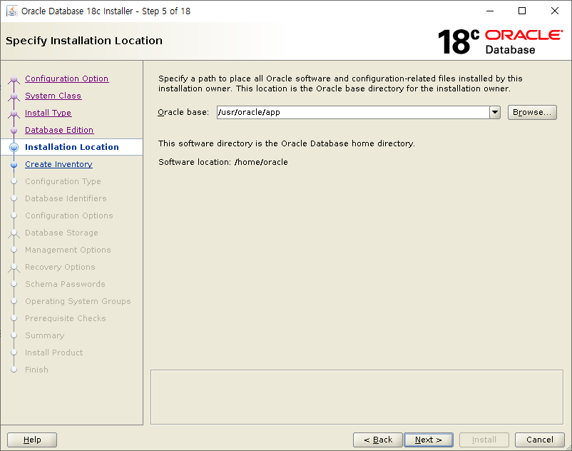 # 필자는 11g, 12c와 비슷하게 구성하기 위해 /usr/oracle/app/product/18c/dbhome_1 경로로 폴더를 생성하여 구성 파일들을 옮김